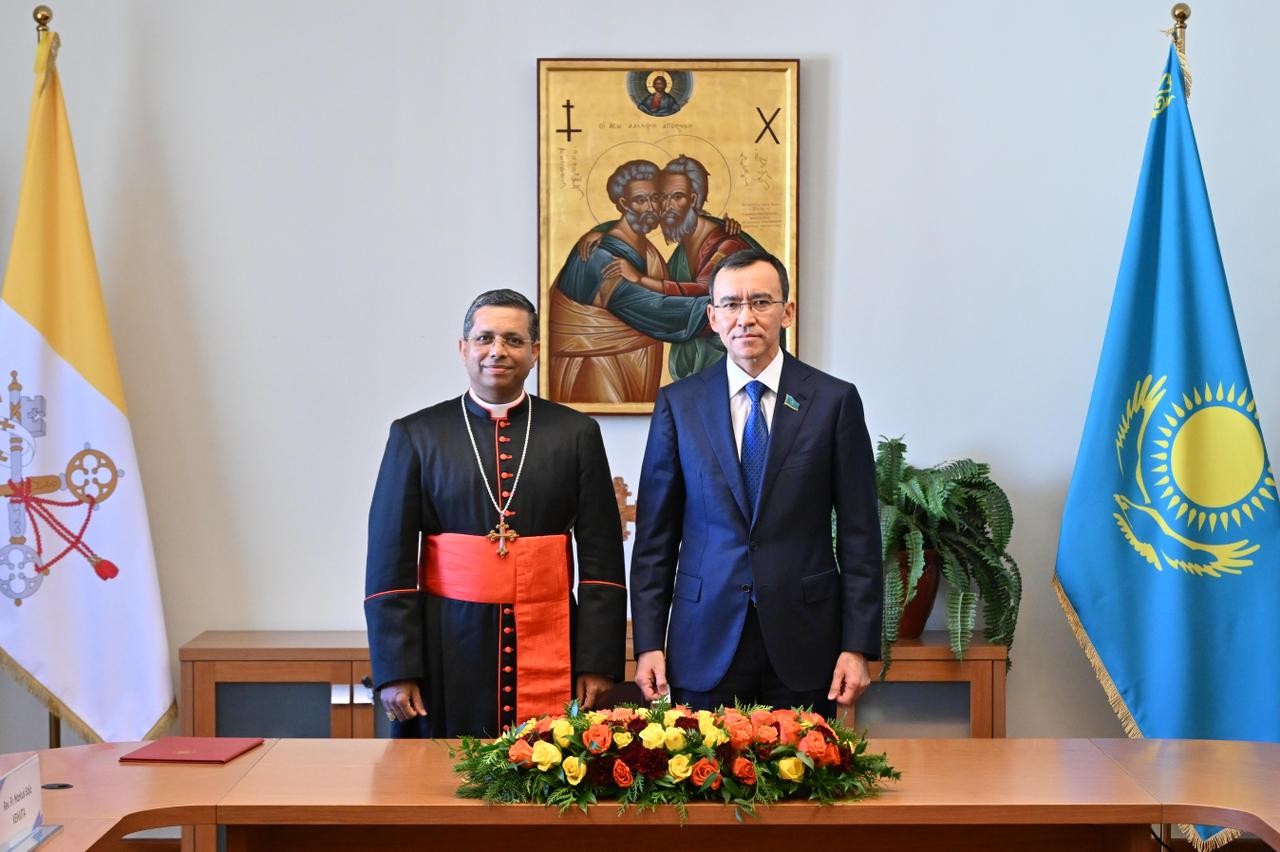 По итогам двусторонней встречи, состоявшейся в рамках Круглого стола, Кардинал Джордж Коовакад, Префект Дикастерии по межрелигиозному диалогу Святого Престола, и Председатель Сената Маулен Ашимбаев официально открыли заседание. Совместно они подтвердили свою приверженность духовной дипломатии, признавая ее эффективным инструментом в стратегии противодействия глобальным вызовам, укрепления мира и развития международного сотрудничества.